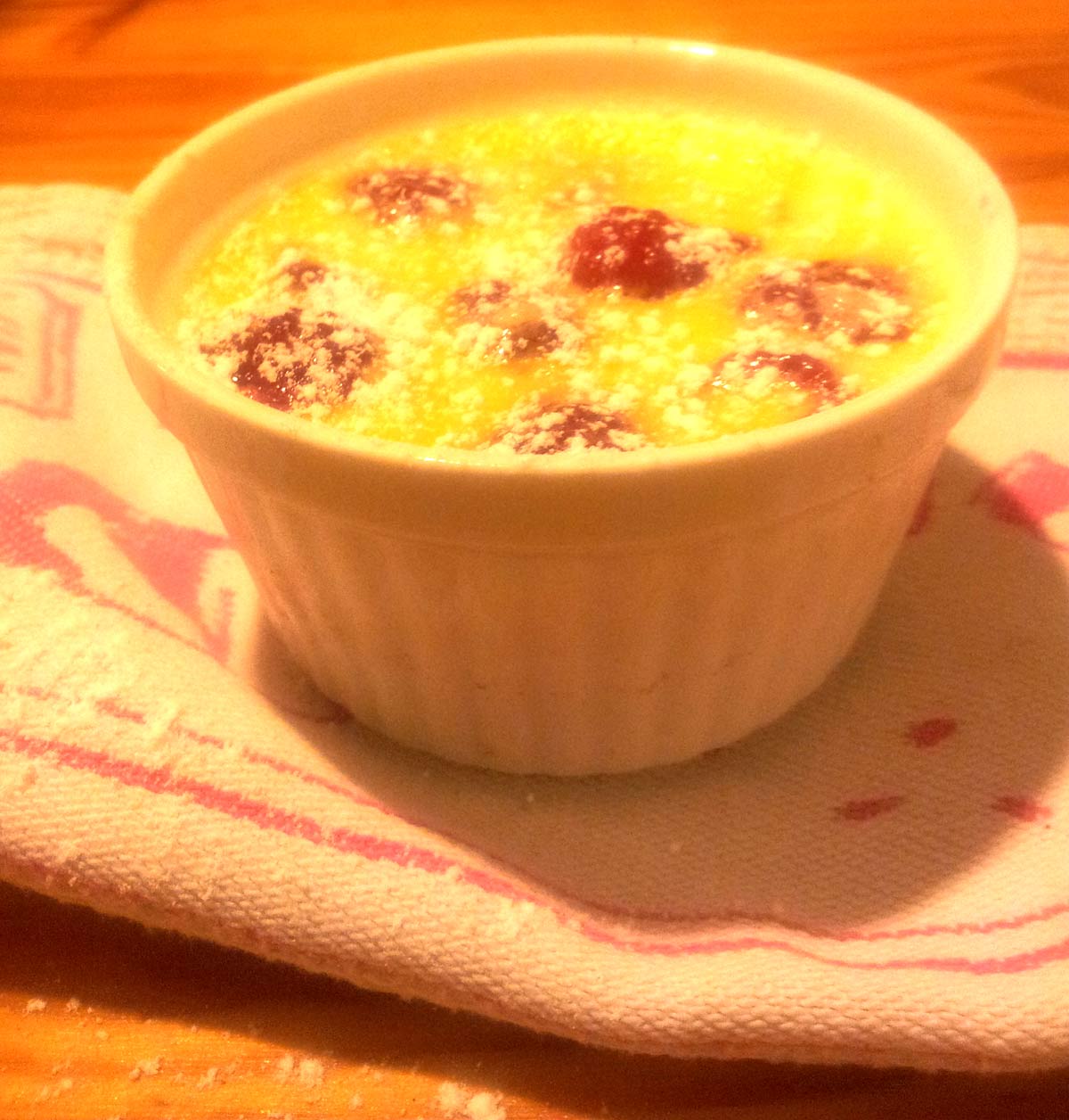 You need some good cream, milk, the best raspberry or kirches, you can add real vanilla (the inside of the stick into your milk when its cooking) sugar and ice sugar for a little touch of decoration. I like small portions they look nicer…more elegant.